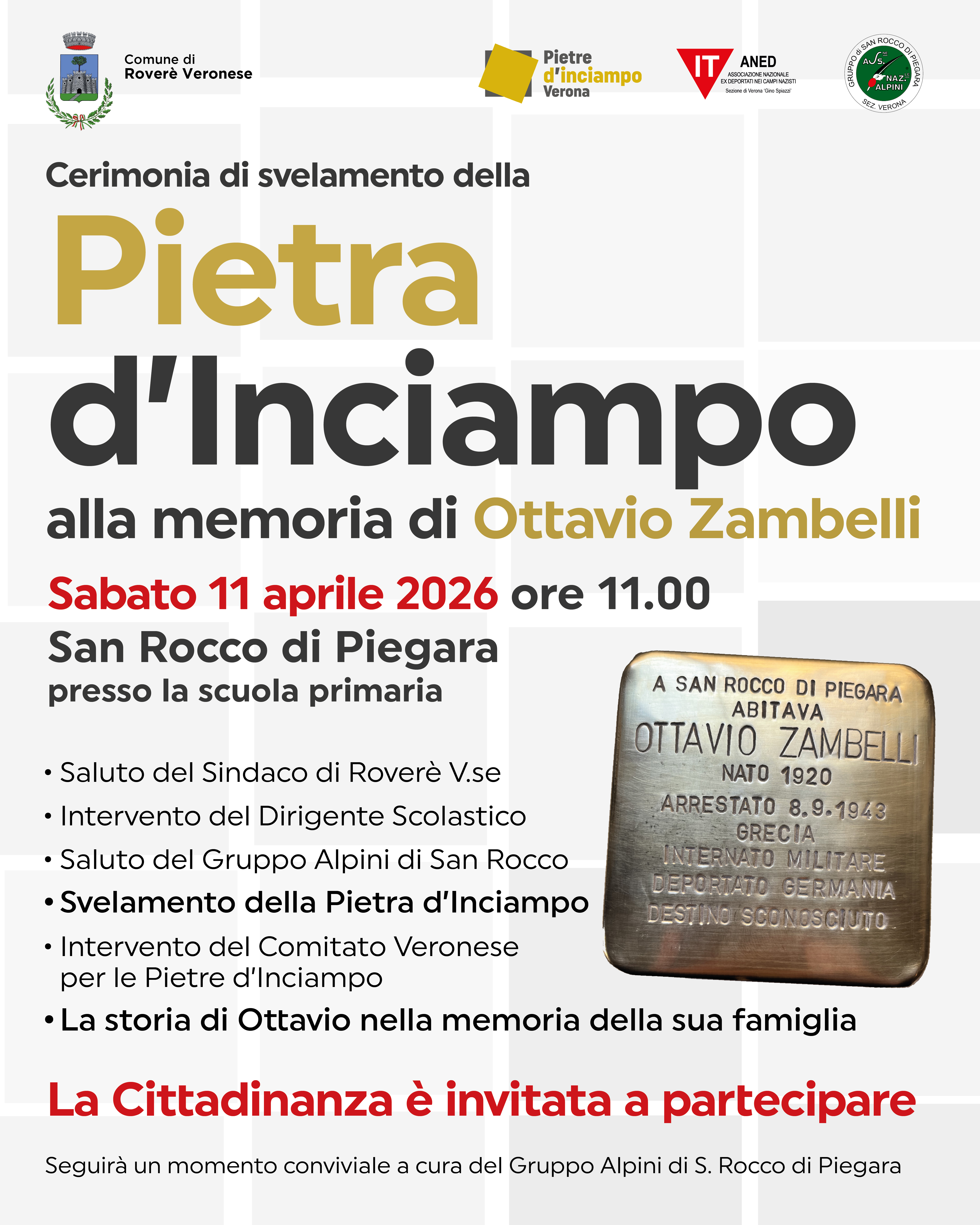 La ricerca storica, l’approfondimento archivistico, la ricerca dei nomi, delle immagini e delle notizie relative ai deportati sono state curate da Alessia Bussola e da Roberto Zamboni, Consiglieri provinciali di Aned Verona.