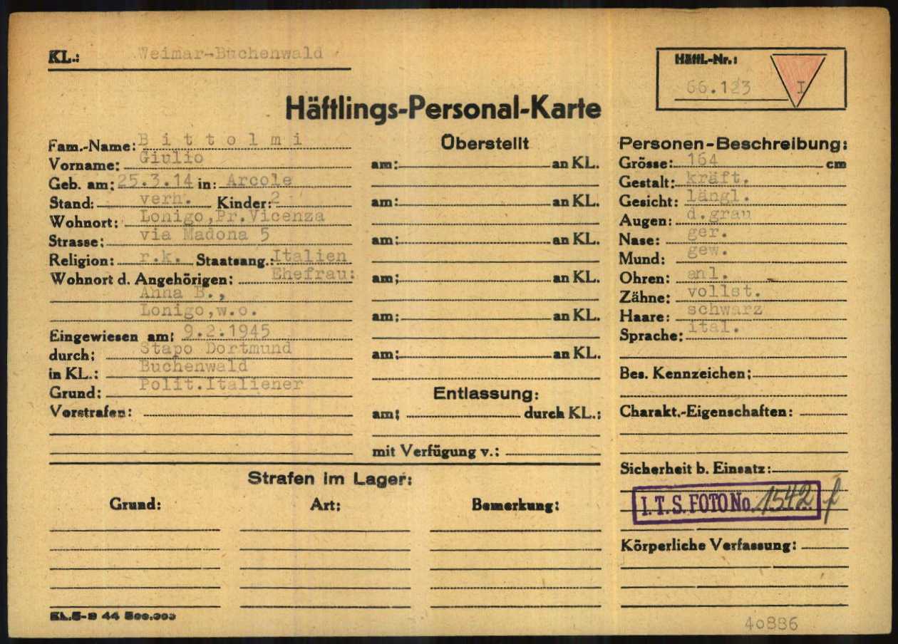 Documenti tratti da The Arolsen Archives online collections – 5548526 / Bittolmi Giulio (Buchenwald).