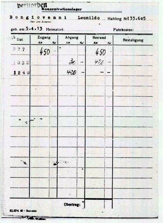 Documenti tratti da The Arolsen Archives online collections – 9990137 / Bongiovanni Leonildo (Dachau).