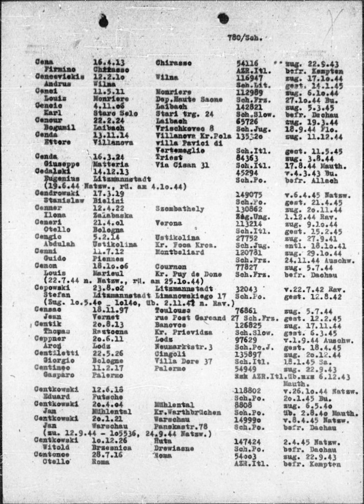 Fonti: Archivio Tibaldi, Venegoni, Libro dei Deportati, NARA – Washington, Ministero della Difesa, Archivio Segreto Vaticano, Spaziani, Arolsen.