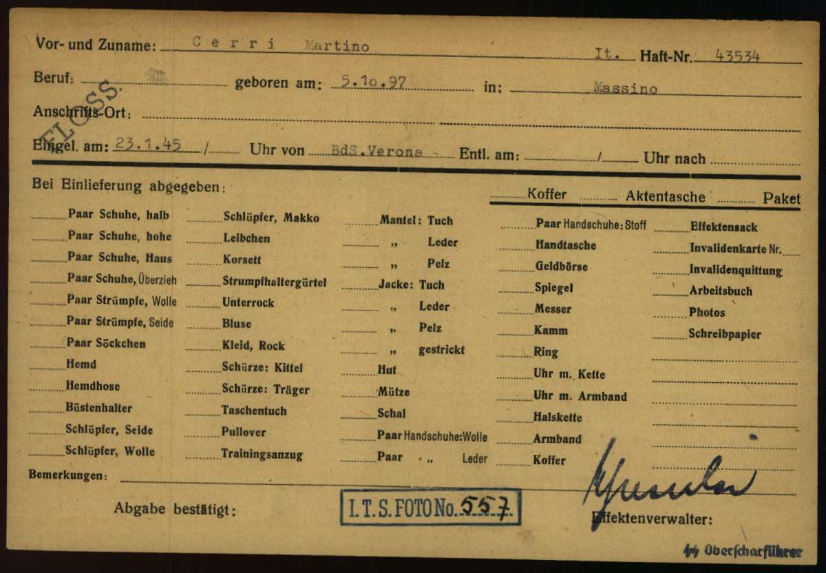 Documenti tratti da The Arolsen Archives online collections – 10839840 / Cerri Martino (Flossenbürg).
