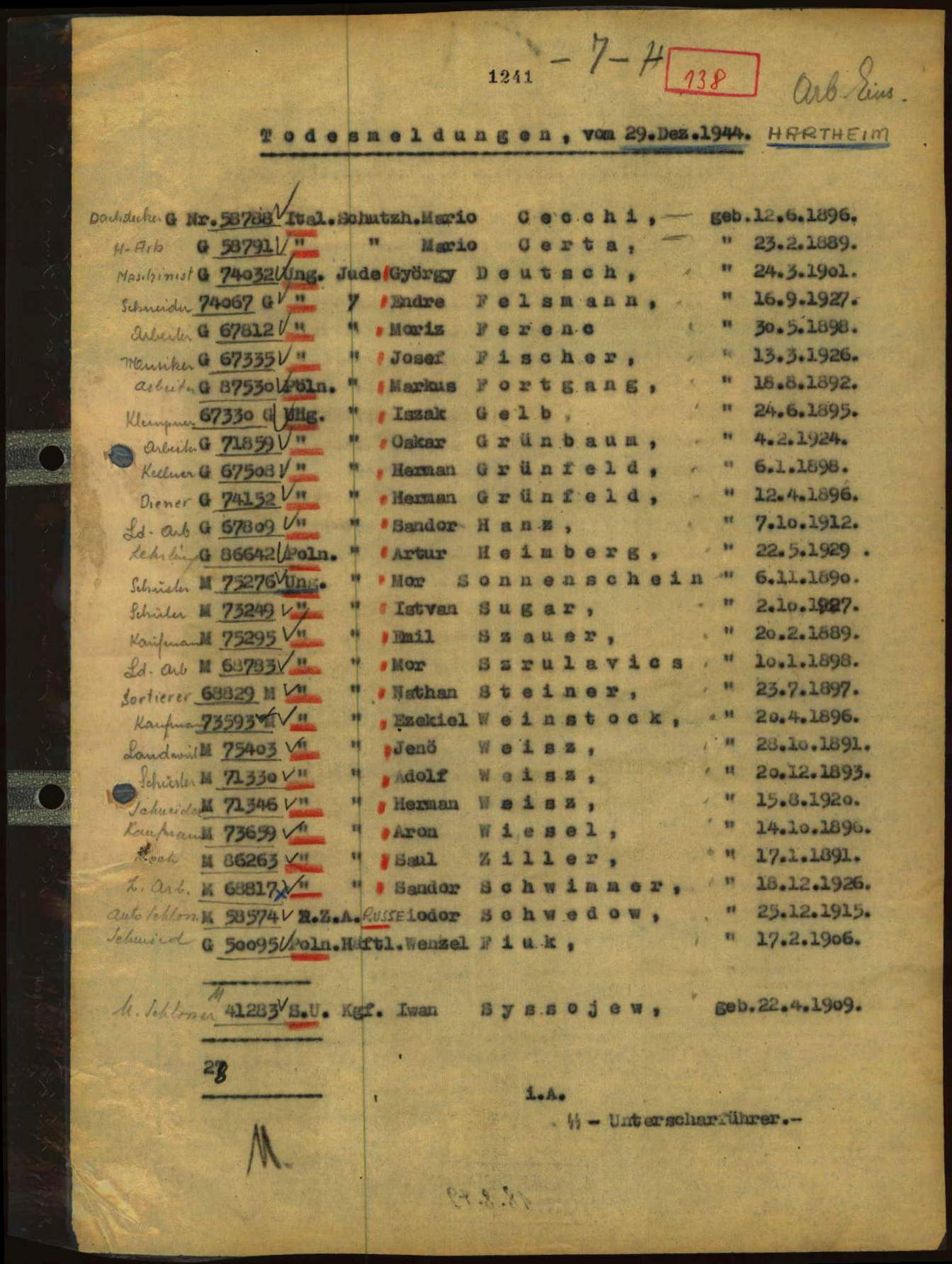 Documenti tratti da The Arolsen Archives online collections – 2517995 / Certa Mario (Mauthausen) e da The Arolsen Archives online collections – 1299043 / Certa Mario (Hartheim).