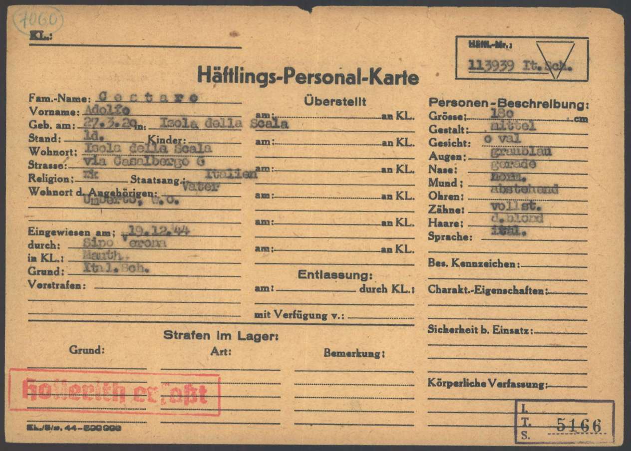 Documenti tratti da The Arolsen Archives online collections – 1390145 / Cestaro Adolfo (Mauthausen).