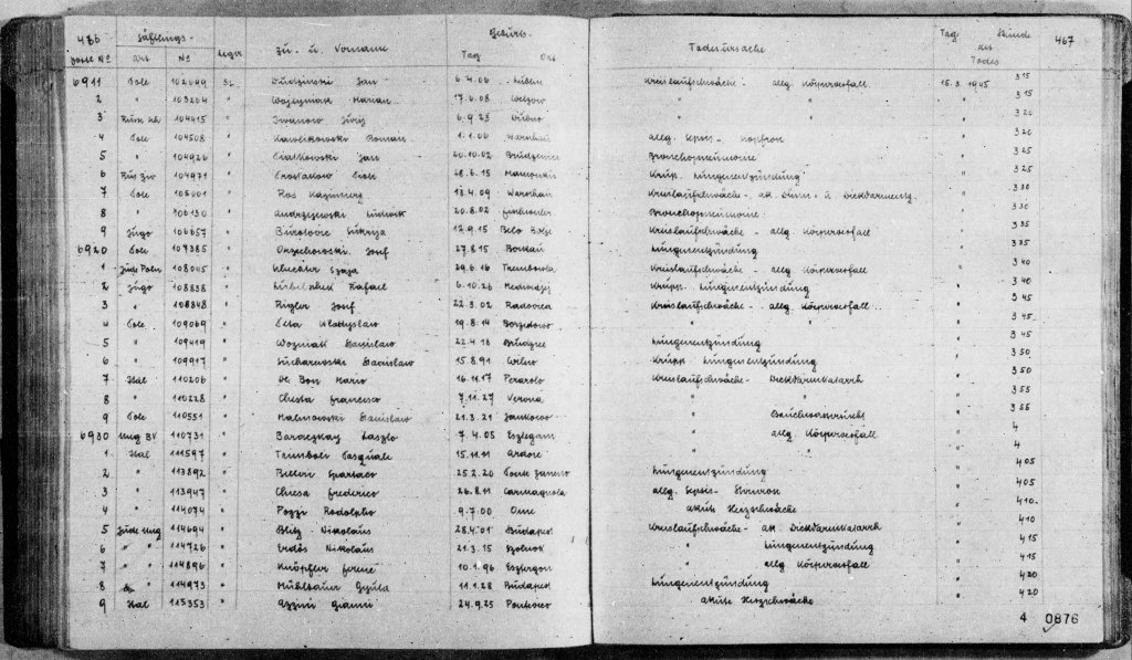 Documenti tratti da The National Archives and Records Administration (NARA) – Chesta Francesco (Mauthausen)– Registro dei decessi – Fold3 File #268307160, Image provided by Fold3.