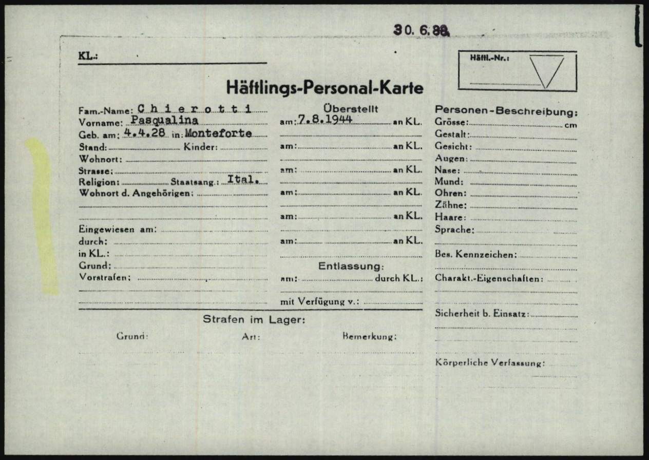 Note: nei documenti (in Arolsen) il nome riportato è Chierotti Pasqualina.