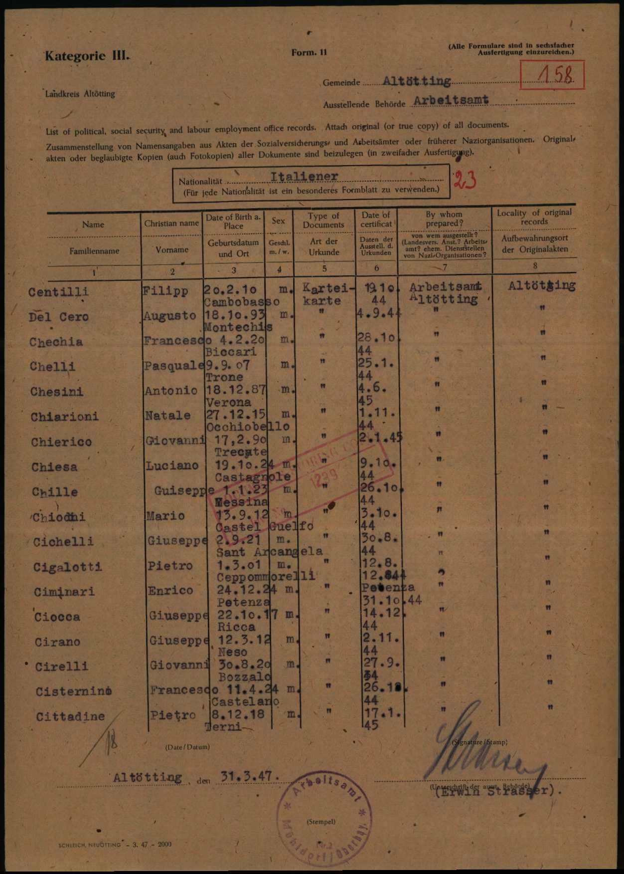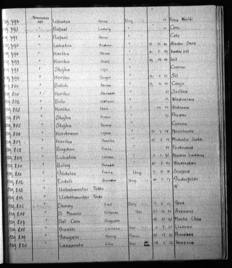 Documenti tratti da The Arolsen Archives online collections – Lista post bellica – Ricerca informazioni sulla sorte dei prigionieri di guerra, dei lavoratori forzati e dei rifugiati – 69789179 / Dal Cero Augusto e The National Archives and Records Administration (NARA Washington) – Volume IA/4 14: November 1944 (First Date: 18-November-1944) – Dal Cero Augusto – Fold3 File #234326184 Image provided by Fold3.