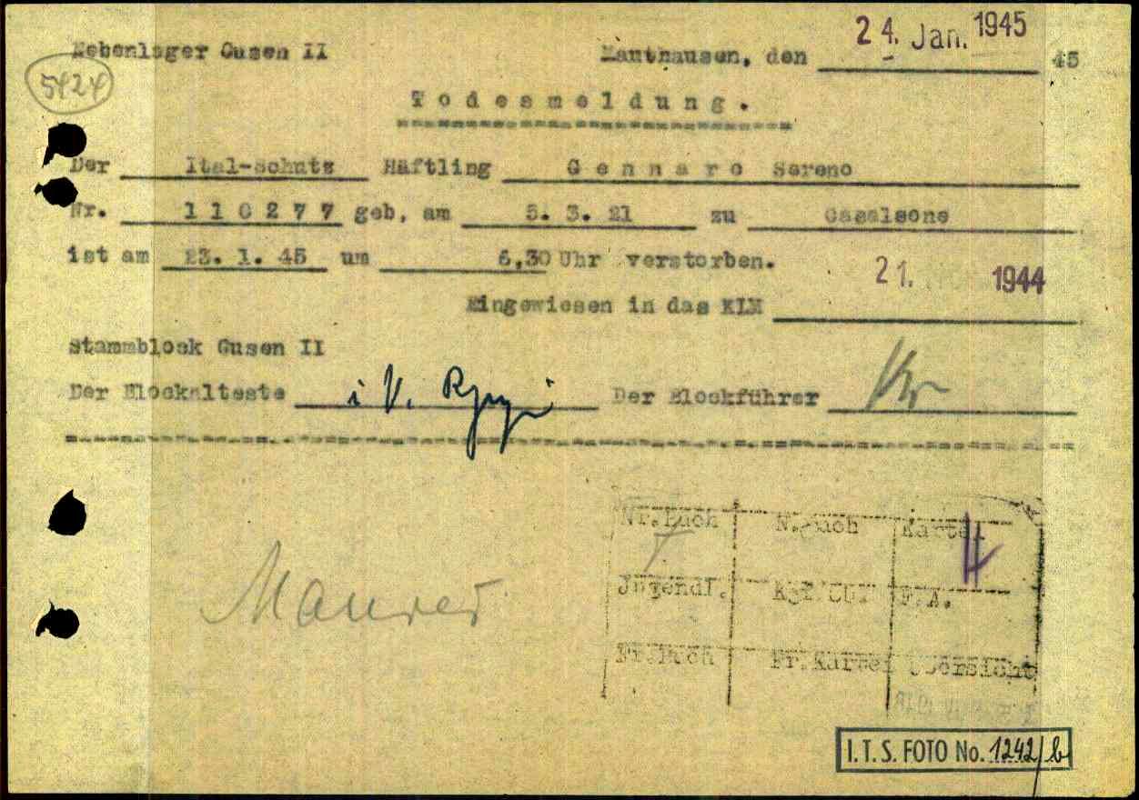 Documenti tratti da The Arolsen Archives online collections – 1456122 / Gennaro Sereno (Gusen).