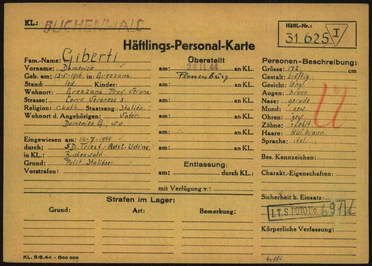 Documenti tratti da The Arolsen Archives online collections – 5946217 / Giberti Domenico (Buchenwald).