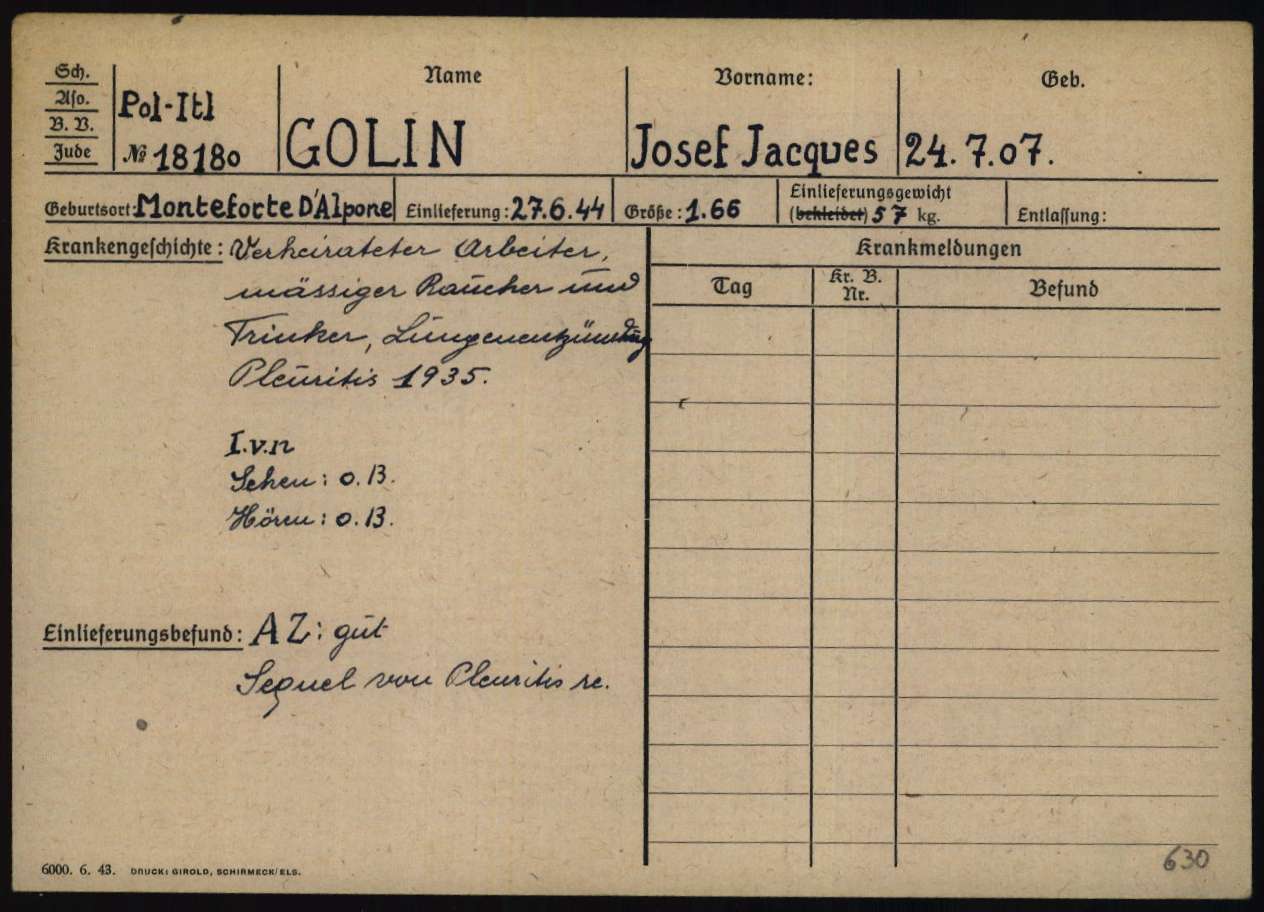 Documenti tratti da The Arolsen Archives online collections – 3171823 / Golin Giuseppe o Josef Jacques (Natzweiler).