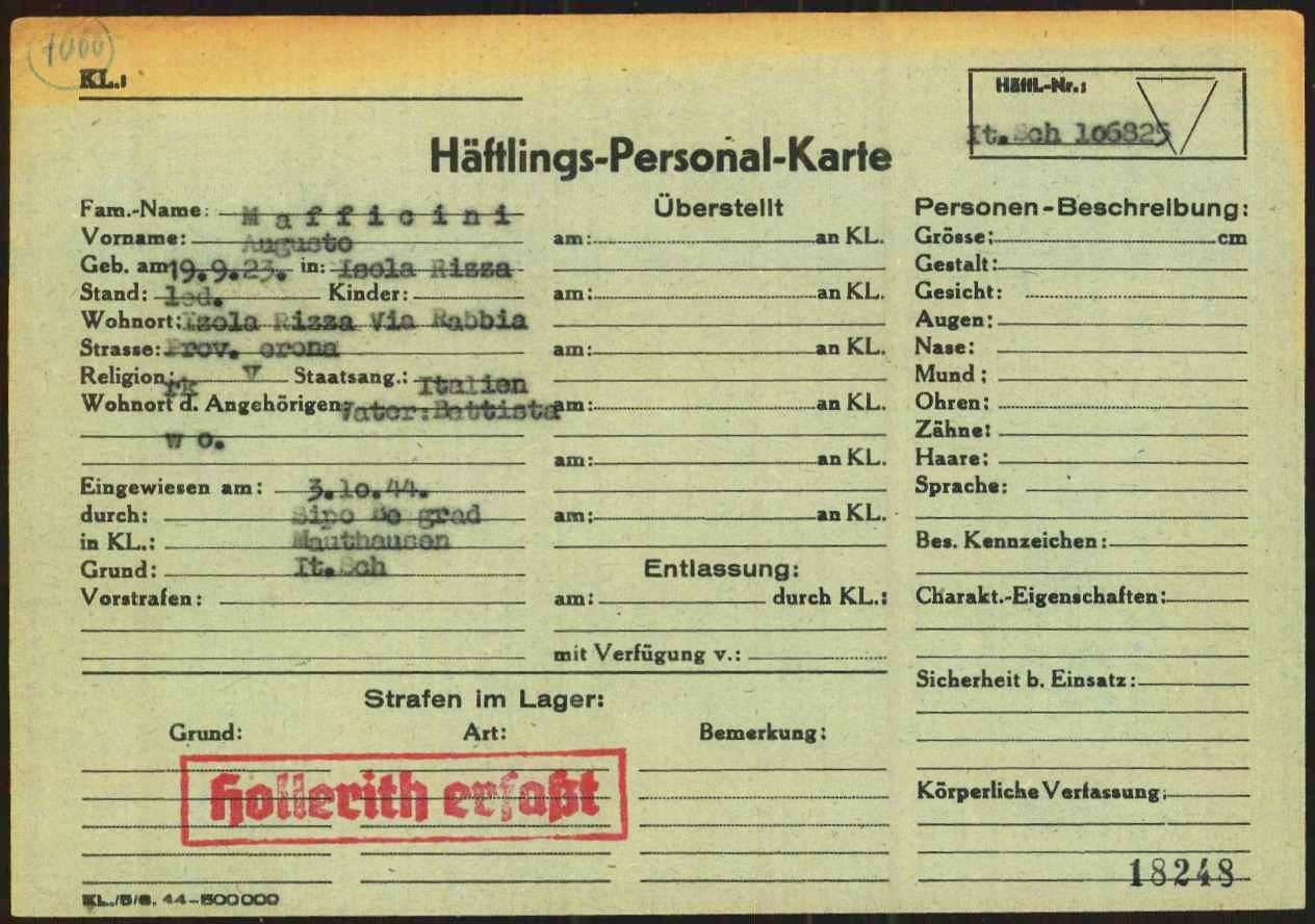 Documenti tratti da The Arolsen Archives online collections – 1603558 / Mafficini Augusto (Mauthausen).