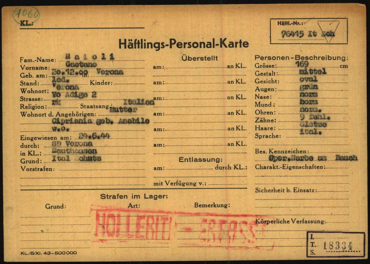 Documenti tratti da The Arolsen Archives online collections – 1604230 / Maioli Gaetano (Mauthausen).