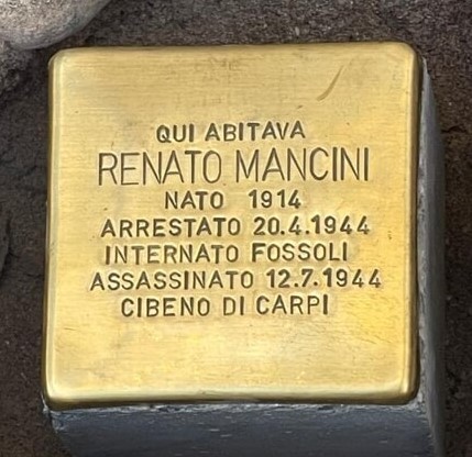 Mancini Renato, nasce a Saludeccio (Rimini) il 26 maggio 1914. Maresciallo dell’esercito (nda: le mostrine nella foto sono della Guardia di Finanza). Coniugato e padre di una figlia, risiede a Verona. Militare membro di una rete informativa alleata (“Reseaux Rex”). Arrestato il 22 aprile 1944, viene condotto prima a San Vittore e poi, il 9 giugno 1944, al Campo di Fossoli, dove riceve la matricola 1656. Viene fucilato al Poligono di Tiro di Cibeno il 12 luglio 1944 ed è riconosciuto solo grazie al numero di matricola. Dopo gli onori della città di Verona, viene sepolto nella tomba di famiglia.