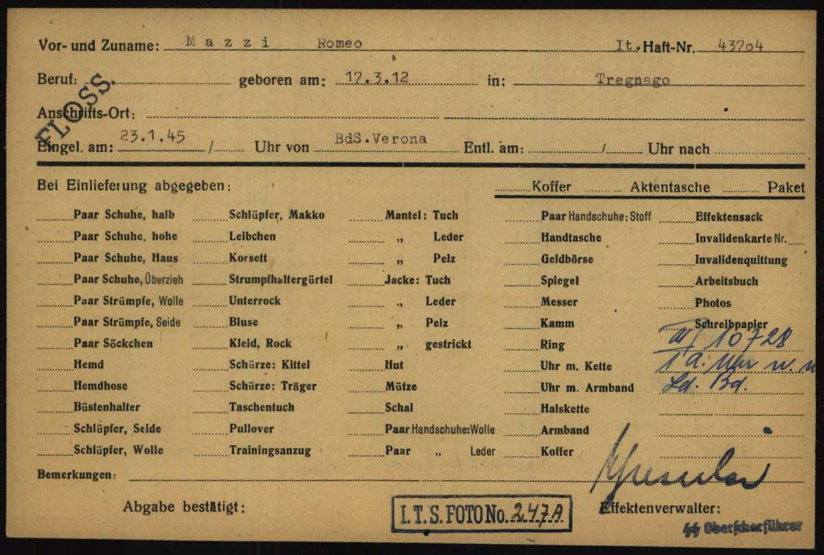 Documenti tratti da The Arolsen Archives online collections – 10944870 / Mazzi Romeo (Flossenbürg).