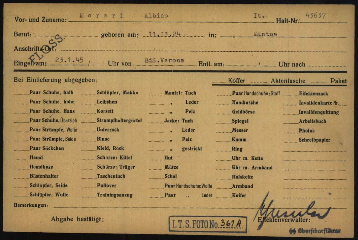 Documenti tratti da The Arolsen Archives online collections – 1640249 / Moro Paolo (Mauthausen) e 1640253 / Moro Paolo (Mauthausen).