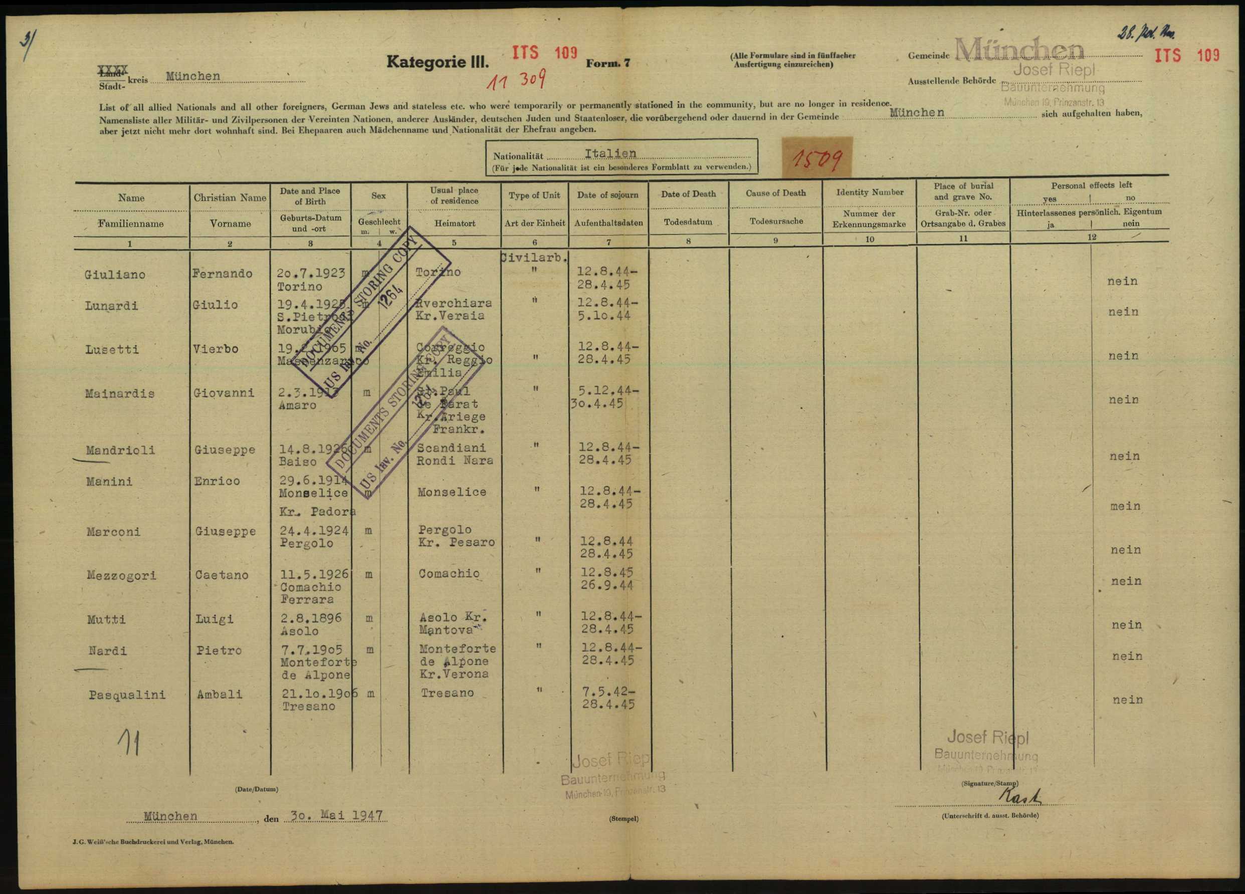 Documenti tratti da The Arolsen Archives online collections – 70058675 / Nardi Pietro e 70060427 / Nardi Pietro.