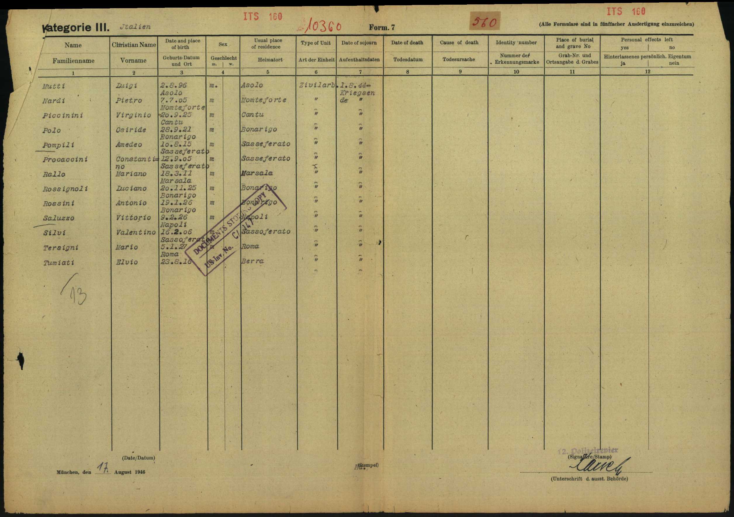 Fonti: Venegoni, Berardo Taddei, Arolsen.