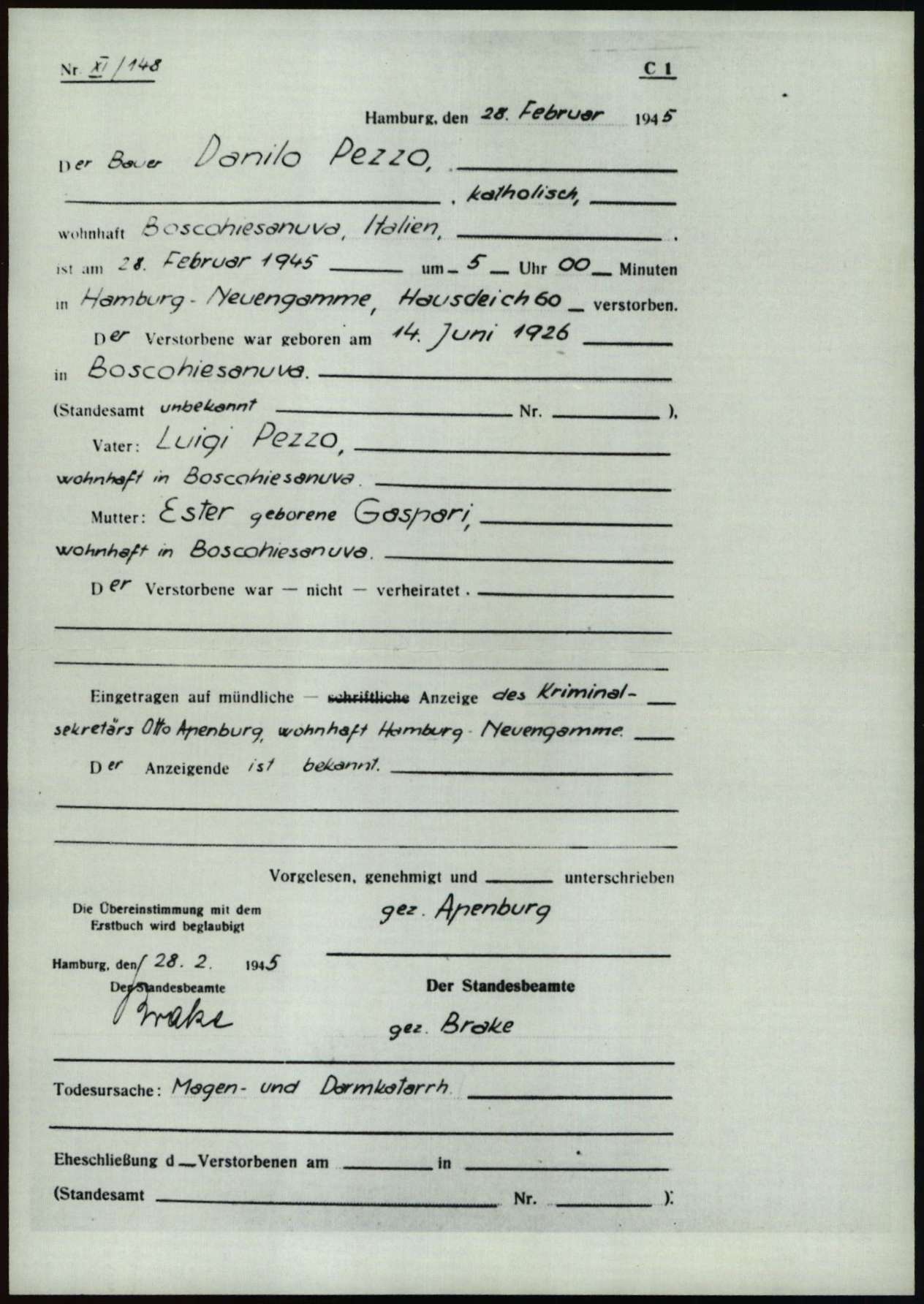 Documenti tratti da The National Archives and Records Administration (NARA Washington) – Volume IA/4 13: October 1944 (First Date: 6-October-1944) – Pezzo Danilo – Fold3 File #234308795, Image provided by Fold3 e da The Arolsen Archives online collections – 3468612 / Pezzo Danilo (Neuengamme).