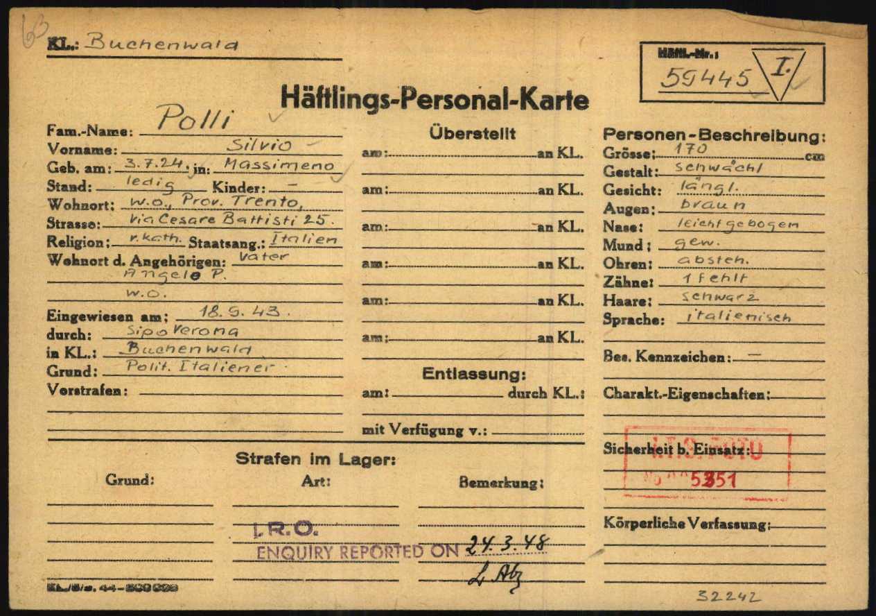 Documenti tratti da The Arolsen Archives online collections – 6852265 / Polli Silvio (Buchenwald).