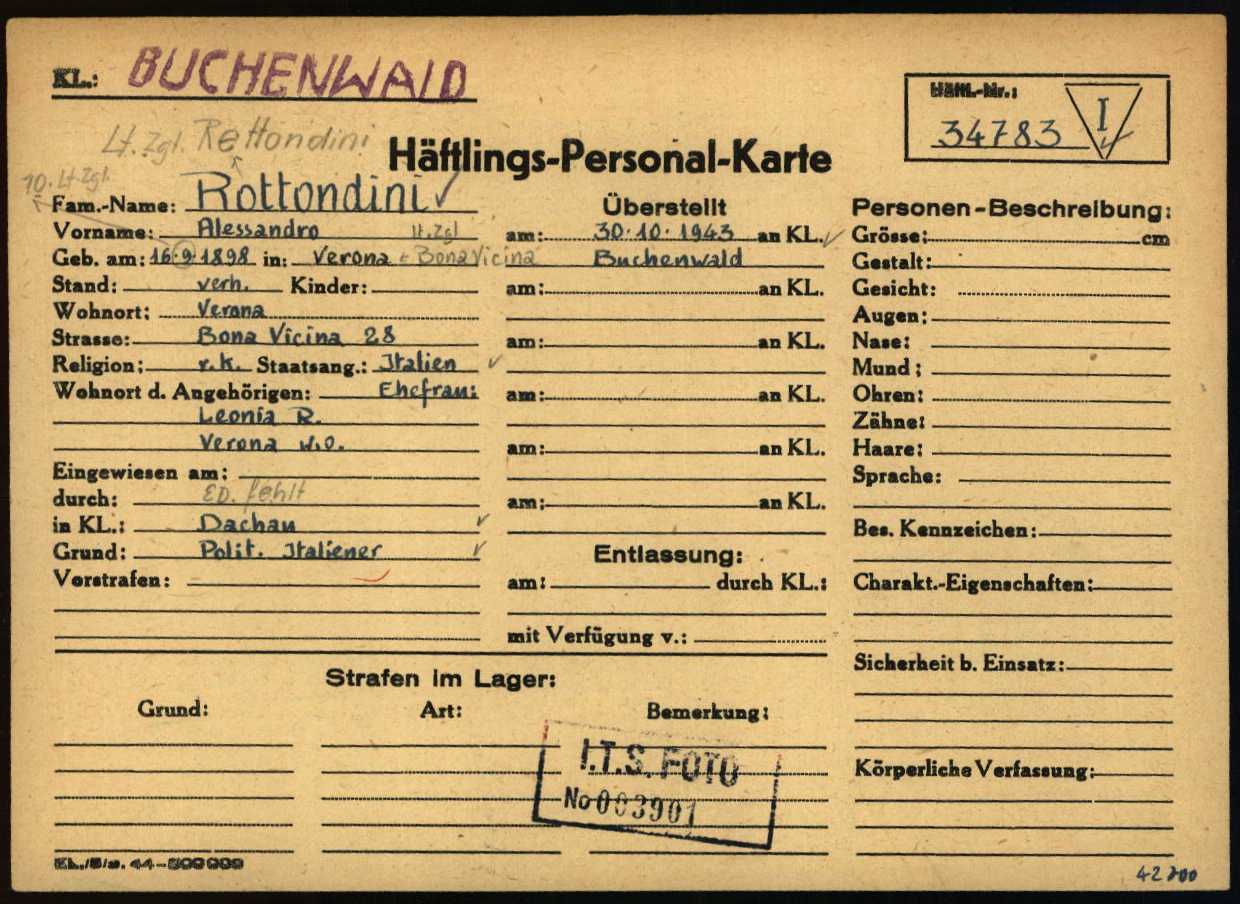 Documenti tratti da The Arolsen Archives online collections – 6961244 / Rettundini, Rettondini o Retondini Alessandro (Buchenwald).