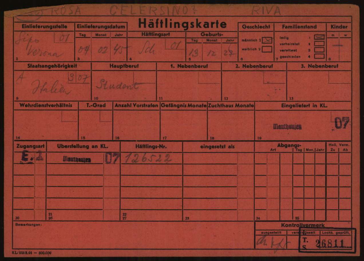 Documenti tratti da The Arolsen Archives online collections – 1721936 / Rosà Celeste Luciano (Mauthausen).