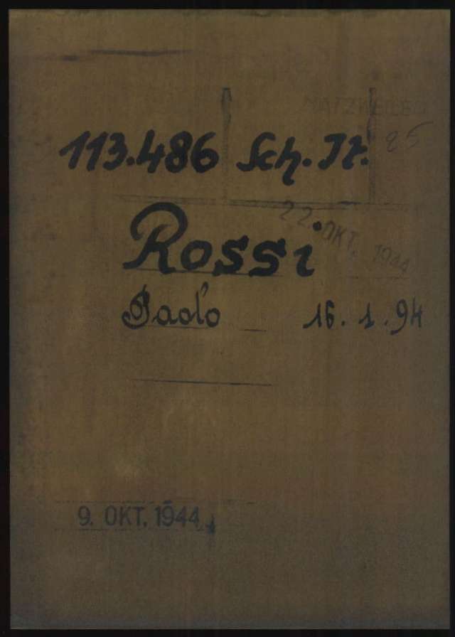 Documenti tratti da Documenti tratti da The National Archives and Records Administration (NARA Washington) – Volume IA/4 13: October 1944 (First Date: 9-October-1944) – Rossi Paolo – Pag. 11 – Fold3 File #234309292, Image provided by Fold3, da The Arolsen Archives online collections – 10270994 / Rossi Paolo (Dachau) e da 3131143 / Rossi Paolo (Natzweiler-Leonberg).