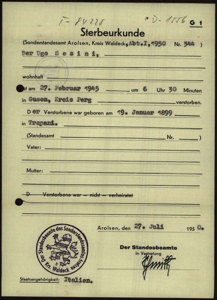 Documenti tratti da The Arolsen Archives online collections – 1318933 / Sesini Ugo (Gusen) e 1758011 / Sesini Ugo.