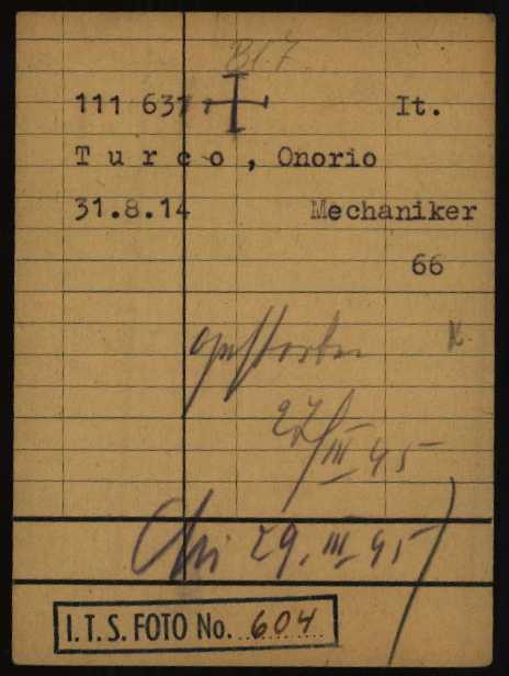 Documenti tratti da The Arolsen Archives online collections – 2742993 / Turco Onorio (Mittelbau Dora).